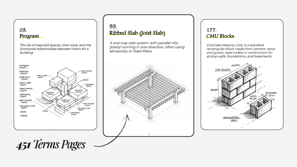 Terms like atrium, mezzanine, R-value, U-value, and many others vastly encountered in practice.