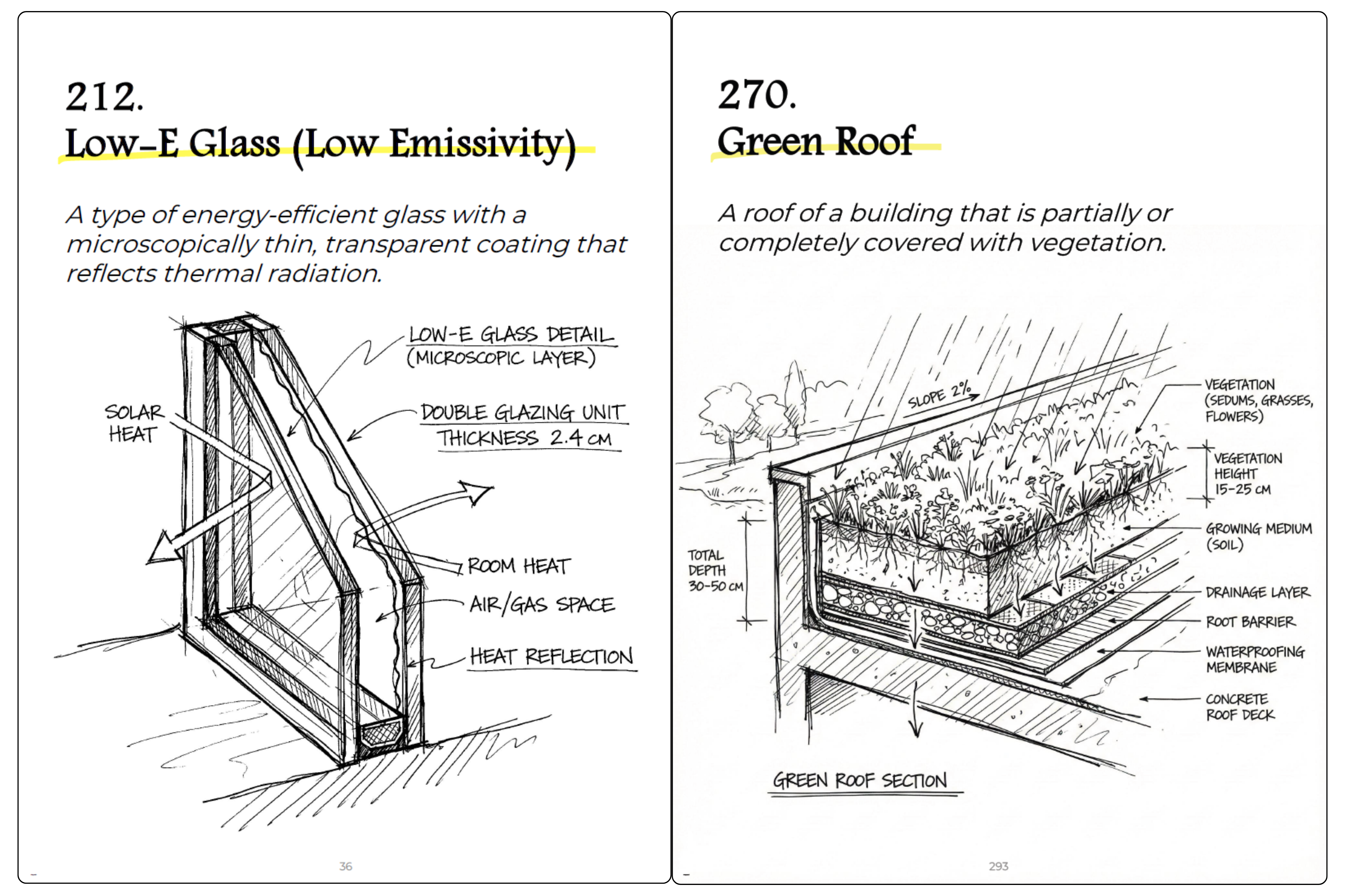 Sustainability concepts, passive design strategies, natural ventilation, and other eco-architectural terminology.