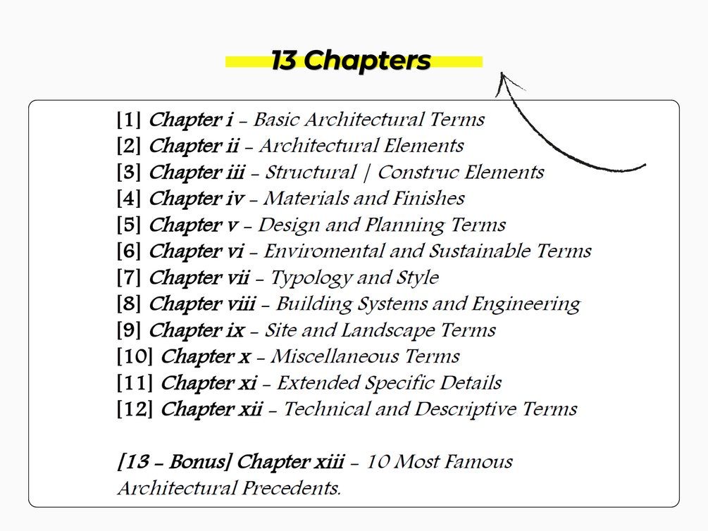 ✅ A bonus chapter (13) on the 10 most famous architectural precedents